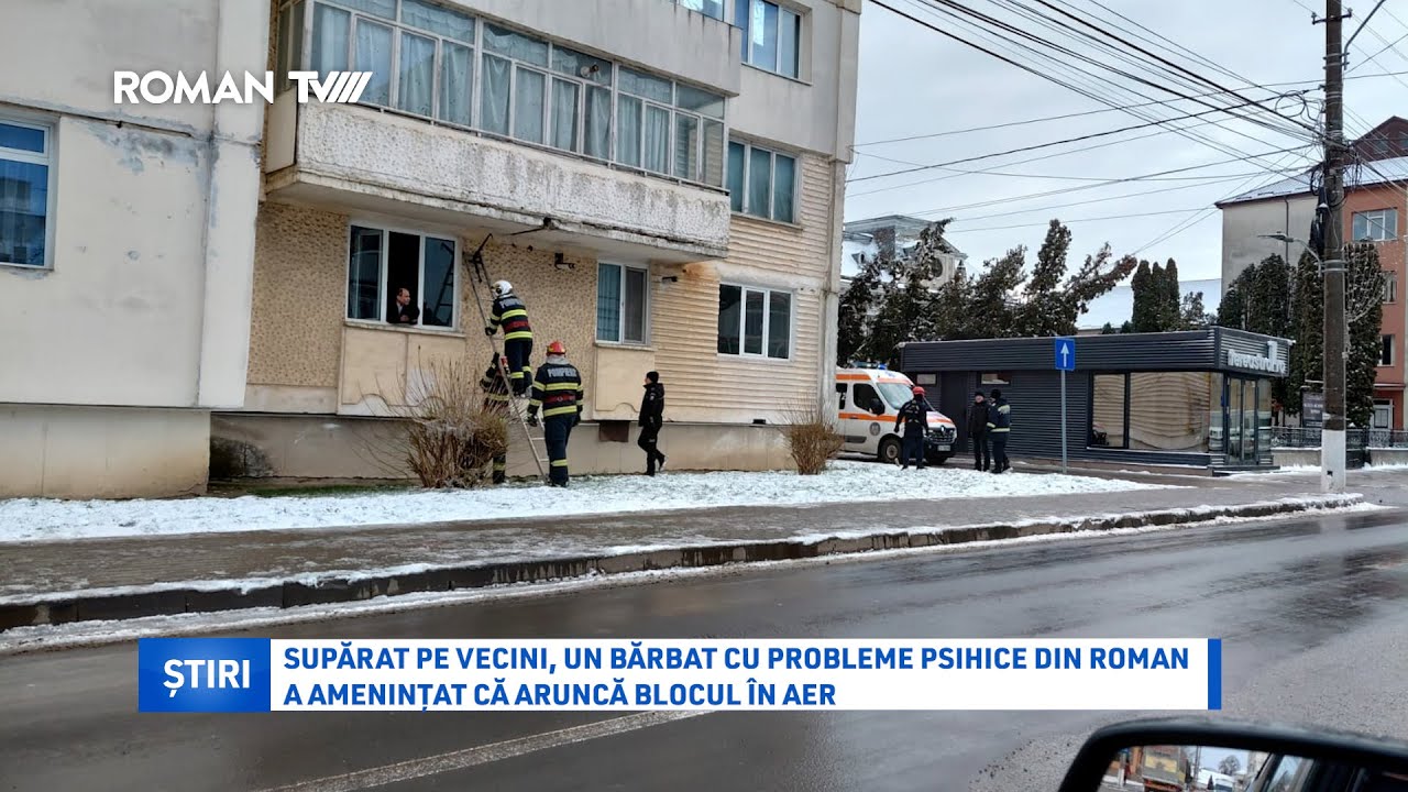 Vineri dimineață, pe fondul unor probleme de sănătate psihică și în contextul unor tensiuni cu vecinii, un bărbat din Roman s-a închis în locuință amenințând că va arunca blocul în aer. Pompierii solicitați la fața locului au deschis calea de acces în imobil, administratorul blocului fiind cel care ar fi solicitat ajutorul poliției prin apel la 112. Ulterior, bărbatul a fost preluat de echipajul ambulanței ajuns la fața locului și transportat la spital pentru acordarea de îngrijiri medicale de specialitate.