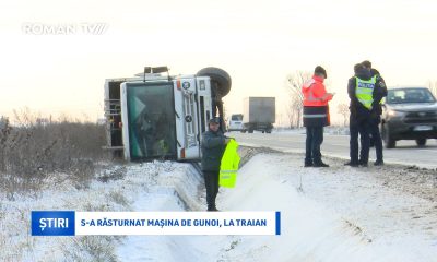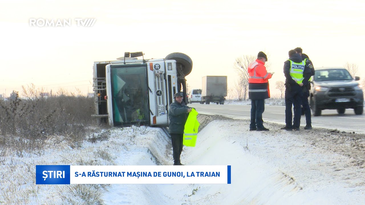 „În această dimineață, în jurul orei 07:20, prin apel la 112 a fost anunțat un eveniment rutier produs pe DN 2- E 85, în satul Traian din comuna Săbăoani. Un autovehicul de colectare a deșeurilor a părăsit partea carosabilă și s-a răsturnat.