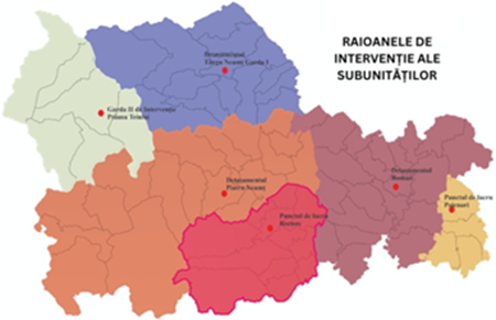 Detașamentul de pompieri Roman și Punctul de lucru Poienari au repartizate un raion de intervenție/sector de intervenție care cuprinde 1 municipiu, 29 de comune din județul Neamț, cu 123 sate și 2 comune din județul Iași (plan de intervenție comună).