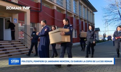 Polițiștii, pompierii și jandarmii nemțeni, cu daruri la copiii de la CSEI Roman