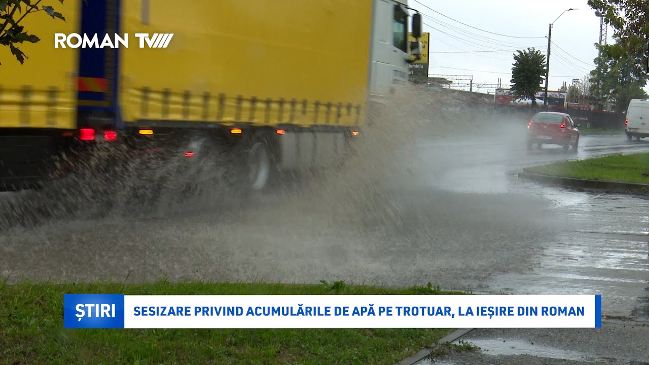 Sesizare privind acumulările de apă pe trotuar, la ieșire din Roman