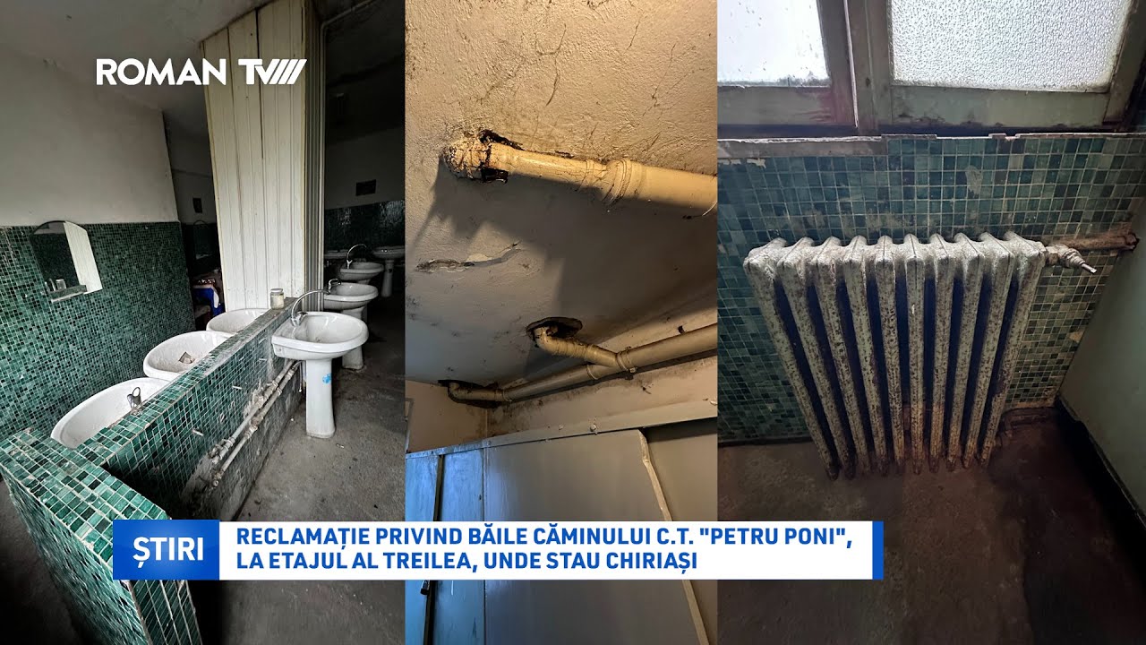 La etajele unu și doi ale internatului Colegiului Tehnic „Petru Poni” din Roman sunt găzduiți elevi ccare învață la instituții de învățământ din oraș. La etajul al treilea locuiesc persoane în chirie, o familie pe cameră. Baia este comună, cât și camera dușurilor. Cea din urmă nu este folosită pentru a face baie, ci pentru a depozita diverse lucruri ale chiriașilor, dușurile fiind nefuncționale. În camerele pe care le au închiriate, unele dintre familii și-au tras apă, au montat boilere și și-au improvizat bucătării, iar baie fac la lighean. Nemulțumirea este legată tocmai de acest fapt, că băile arată deplorabil, iar apă caldă nu este decât dacă oamenii își încălzesc la aragaz. Însă, cea mai mare rugăminte este cea legată de igienizarea și modernizarea băii comune. Cine ne-a contactat a dorit să rămână anonim de teamă să nu piardă accesul la camera pe care o are închiriată.