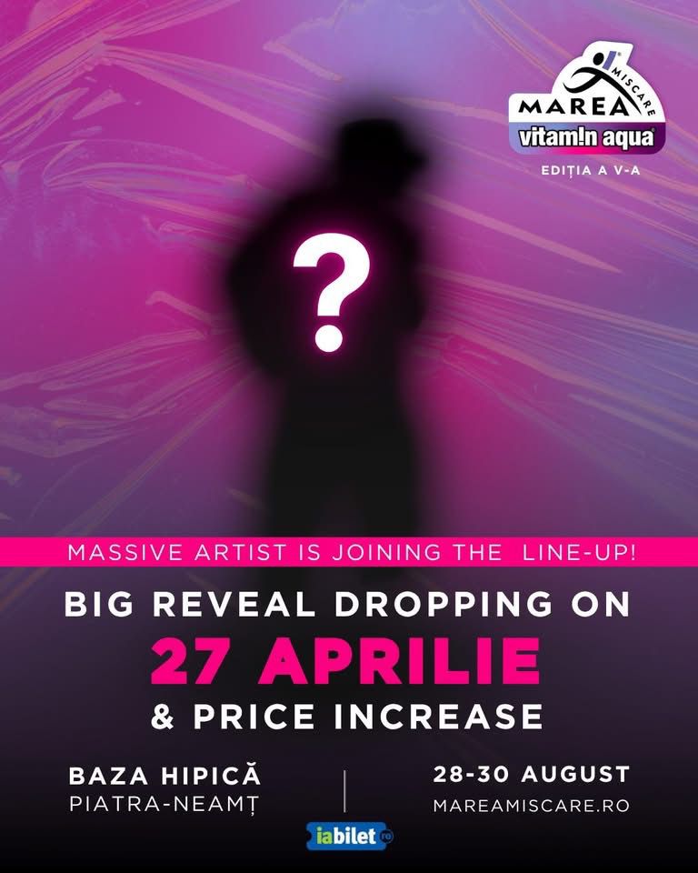 Pe 27 aprilie 2026, organizatorii vor anunța un nou artist care se va alătura lineup-ului oficial. Cine este artistul surpriză care va concerta în premieră la festivalul „Marea Mișcare”?